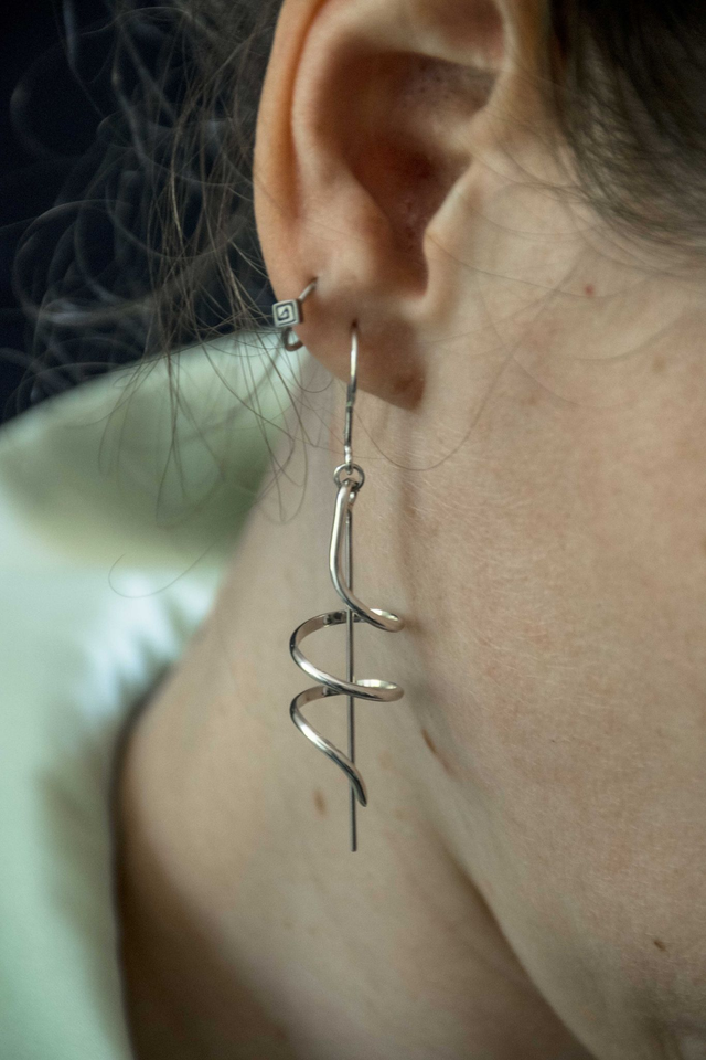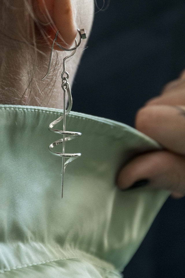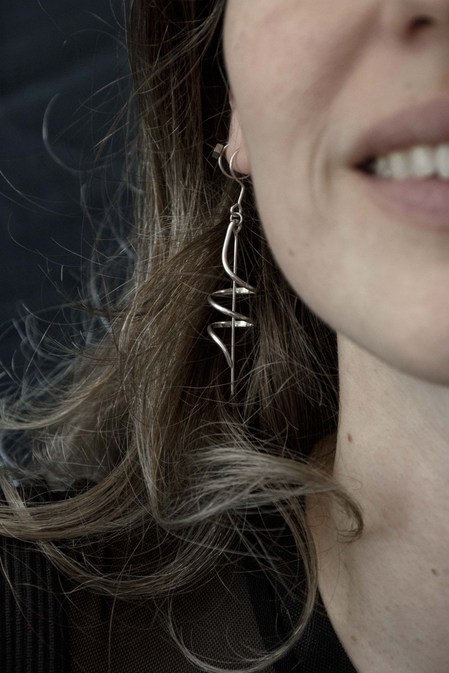 Les boucles d’oreilles Auralis représentent la quête de l’équilibre et symbolisent nos parcours de vie alternant entre doute et évidence.