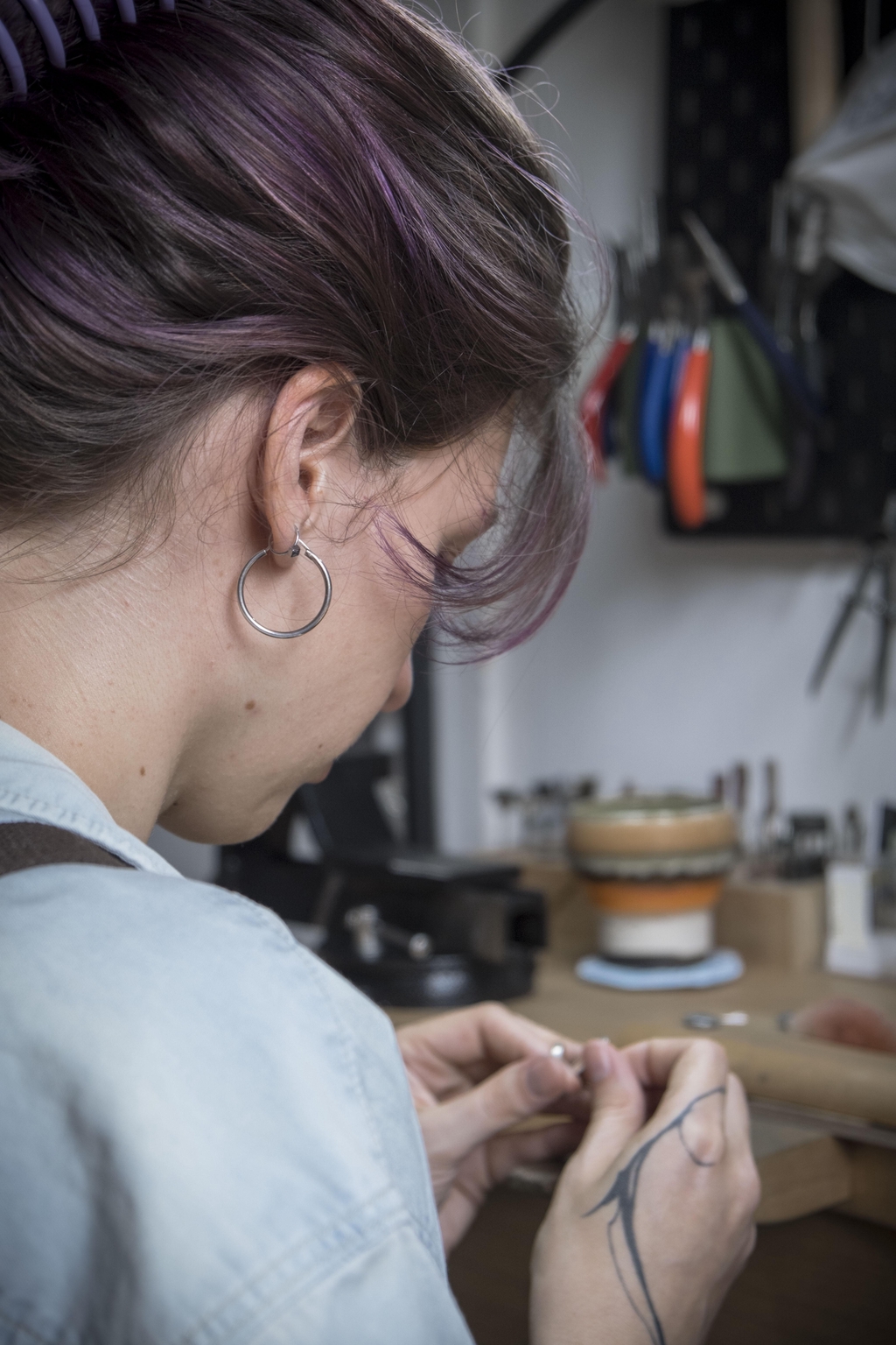 Mon parcours dans le monde de la bijouterie a été sinueux. Après une année d’études artistiques en Irlande où j’ai découvert le travail des métaux précieux, j’ai suivi un cursus universitaire en communication avant de tout quitter pour traverser le Canada d’ouest en est dans un vieux van des années 70.